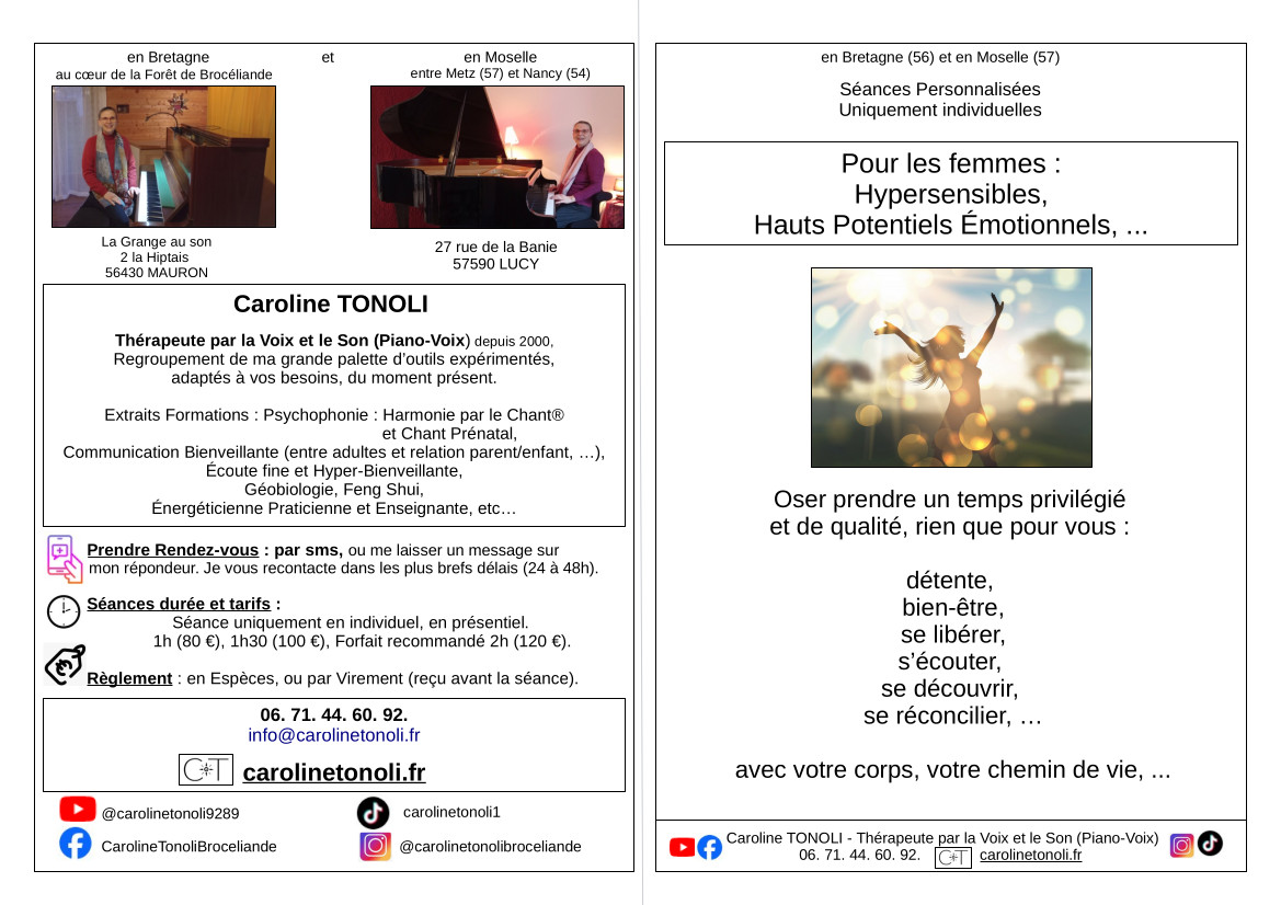 - Présentation de Kristell Cointo, et de son activité, “Le Piano Messager”. Et vidéo présentation de sa salle pour la continuité de mes séances chez elle, à Mauron (56) en Bretagne.